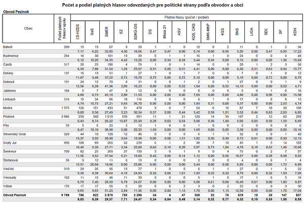 PODROBNÉ VÝSLEDKY V JEDNOTLIVÝCH VOLEBNÝCH OBVODOCH V OKRESE PEZINOK